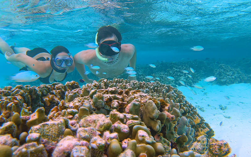 Pero más allá de Malé, las Maldivas son un paraíso natural. Hacer snorkel o submarinismo es obligatorio: sus fondos marinos, gracias a la claridad del agua, permiten observar tiburones ballena, mantarrayas y tortugas gigantes entre arrecifes de coral. Además, muchas islas turísticas ofrecen traslados en hidroavión, lo que permite disfrutar de vistas impresionantes de las más de 1.200 islas coralinas que conforman el país.