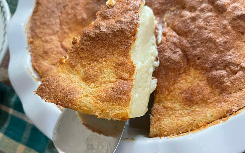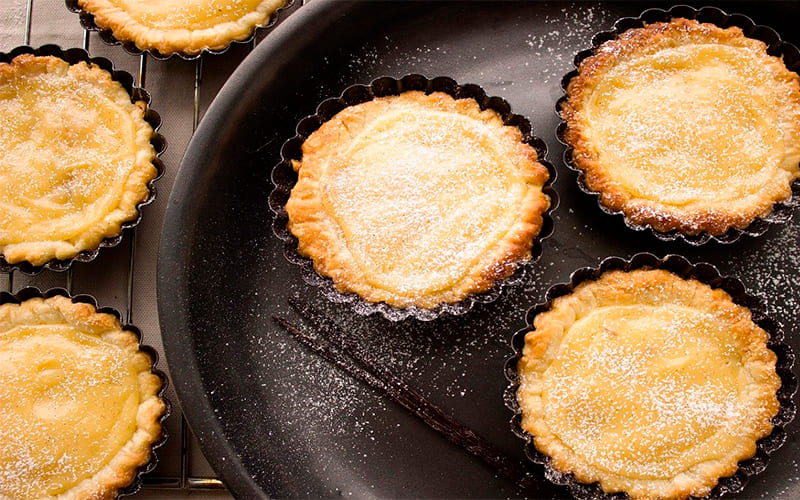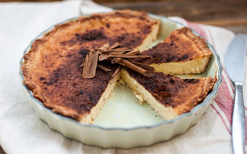 El Melkert, clásico de la cocina sudafricana, combina una base crujiente con una crema suave y aromática. Su capa final de canela y azúcar moreno aporta el sabor cálido y el característico tono ámbar que lo distingue. Es un postre ideal para desayunos, meriendas o como cierre dulce de cualquier comida, siempre en porciones pequeñas por su gran aporte de azúcar y mantequilla.