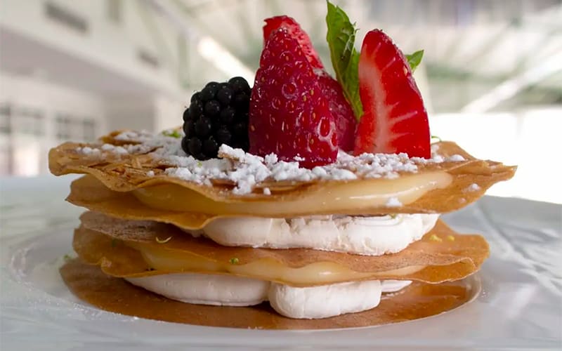 La tarta árabe es una joya de la repostería del Medio Oriente que conquista por su textura y sabor. Este postre combina obleas de pasta brick fritas, ligeras y crujientes, con una delicada crema diplomática, mezcla perfecta entre crema pastelera y nata semimontada. Su contraste entre lo crocante y lo suave la convierte en una experiencia única para el paladar.