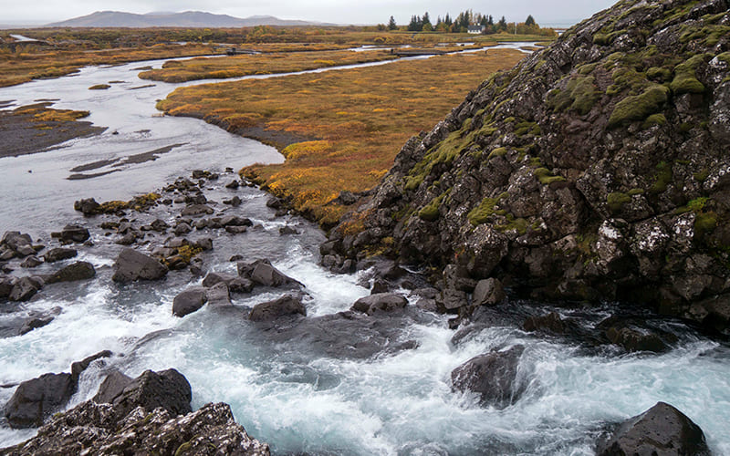 A lo largo del imponente cañón de Almannagjá fluye el río Öxará, que añade belleza a esta poderosa muestra de la fuerza de la Tierra. Desde 1930, Thingvellir es parque nacional, pero mucho antes ya era un sitio sagrado y político para los islandeses.