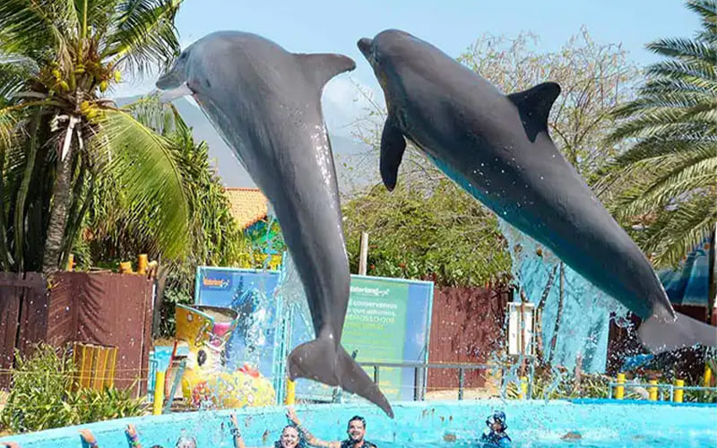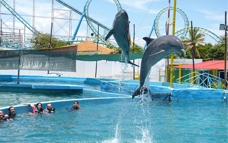 Si quieres llevar la experiencia a otro nivel, puedes participar en las experiencias interactivas del parque: el Encuentro con Delfines, donde podrás acariciarlos y tomarte fotos; o la Experiencia Nado con Delfines, que te permite nadar junto a ellos en un momento realmente mágico.